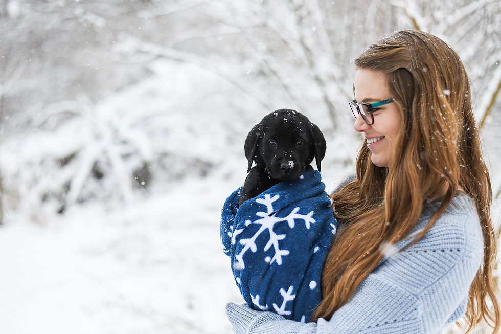 My brother and his girlfriend got a new 8 week old black lab baby named Roscoe. He is just the cutest and you can tell he looks up to his big sis, Daisy, so much already! I absolutely love dogs and any chance I get to photograph them with their owners is the BEST. I had so much fun with this (Tess is super creative and brought props for the session). We were also in the midst of the snowstorm (we ended up with 11 inches in 24 hours) so after we got some Pinterest worthy shots on my porch, we headed out to the snow for some beauties while the white stuff was falling. Ahhh.. I just love these. :)